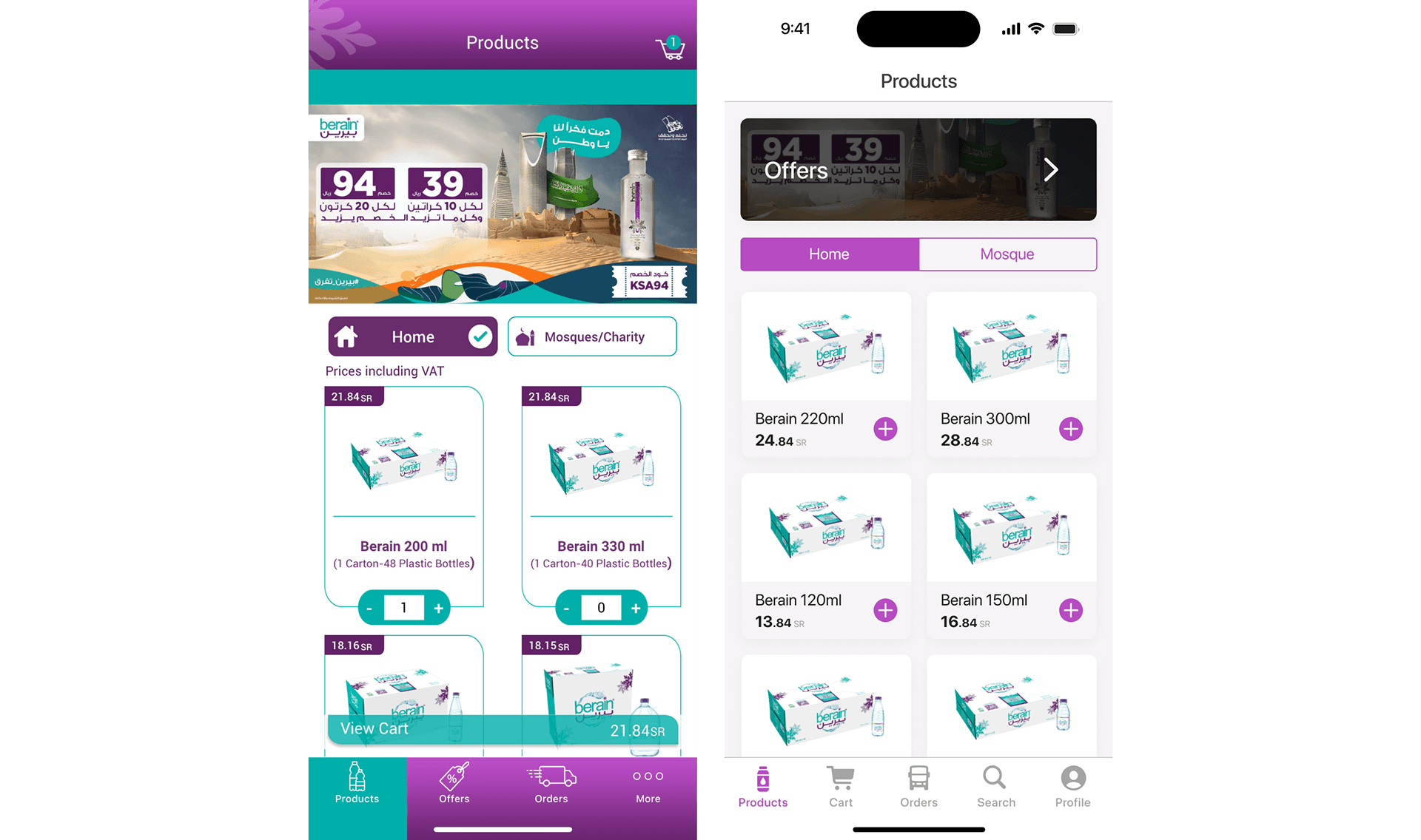 بعد تطبيق لوحة الأنماط الجديدة، صار لشاشة المنتجات شعور أكثر حداثة. أعدت تصميم عدة عناصر أساسية، منهم الـ(Call to Action)، وقسم الإعلانات، ودمج مكونات iOS الأصلية من آبل لمواكبة معايير التصميم الحديثة. لوحة الألوان البسيطة تساعد في توجيه تركيز المستخدم، ويسهّل إتمام المهمة الرئيسية.
